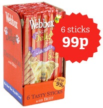 Building on the success of Tasty Cat Sticks, dogs got their own version, in two irresistible varieties retailing at 99p for 6 sticks.