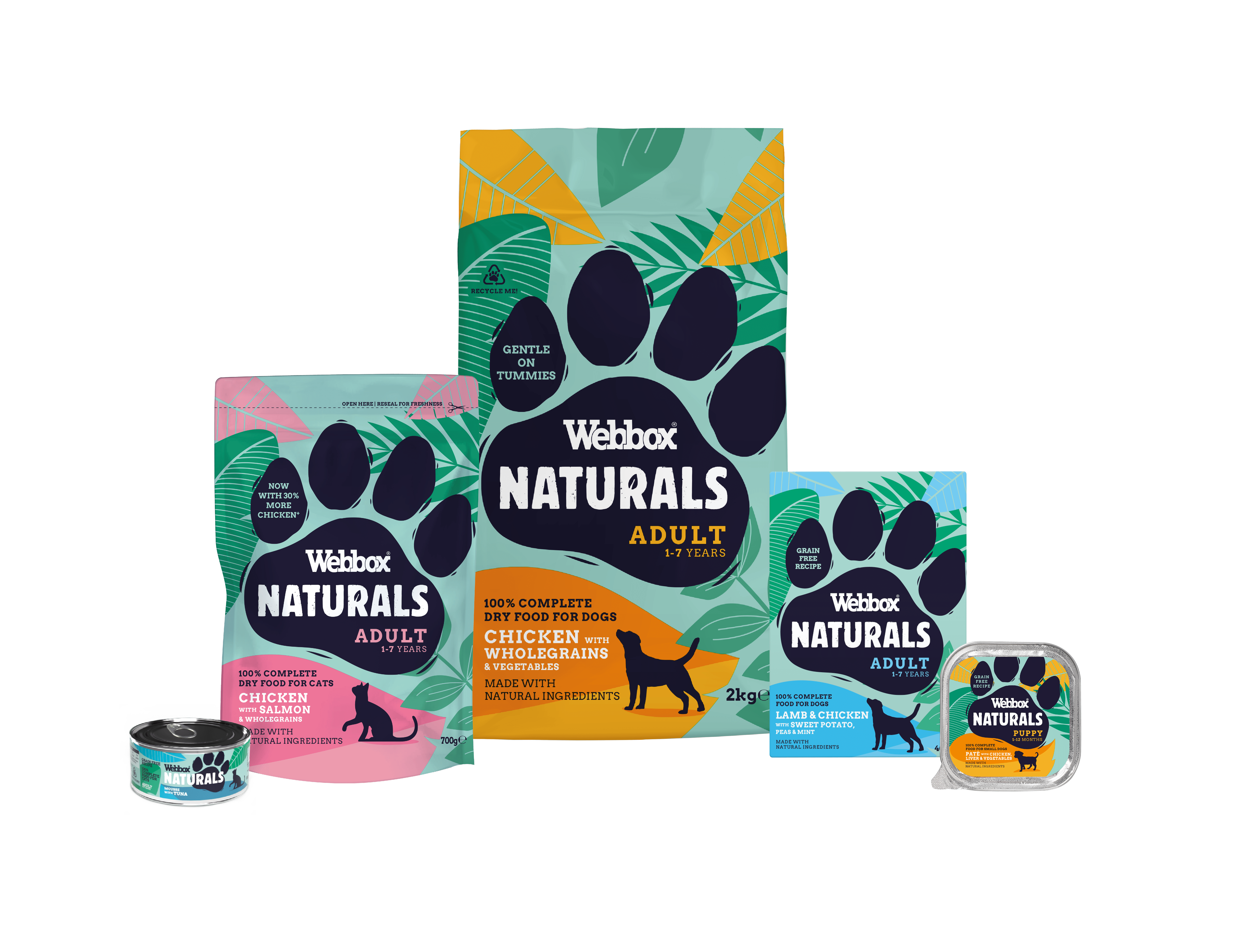 Who said natural pet food has to be ’beige’ and serious. Why can’t there be a bit more colour, fun and vibrancy. Life with pets is never dull, so we launched our vibrant new leafy look for the Webbox Naturals range