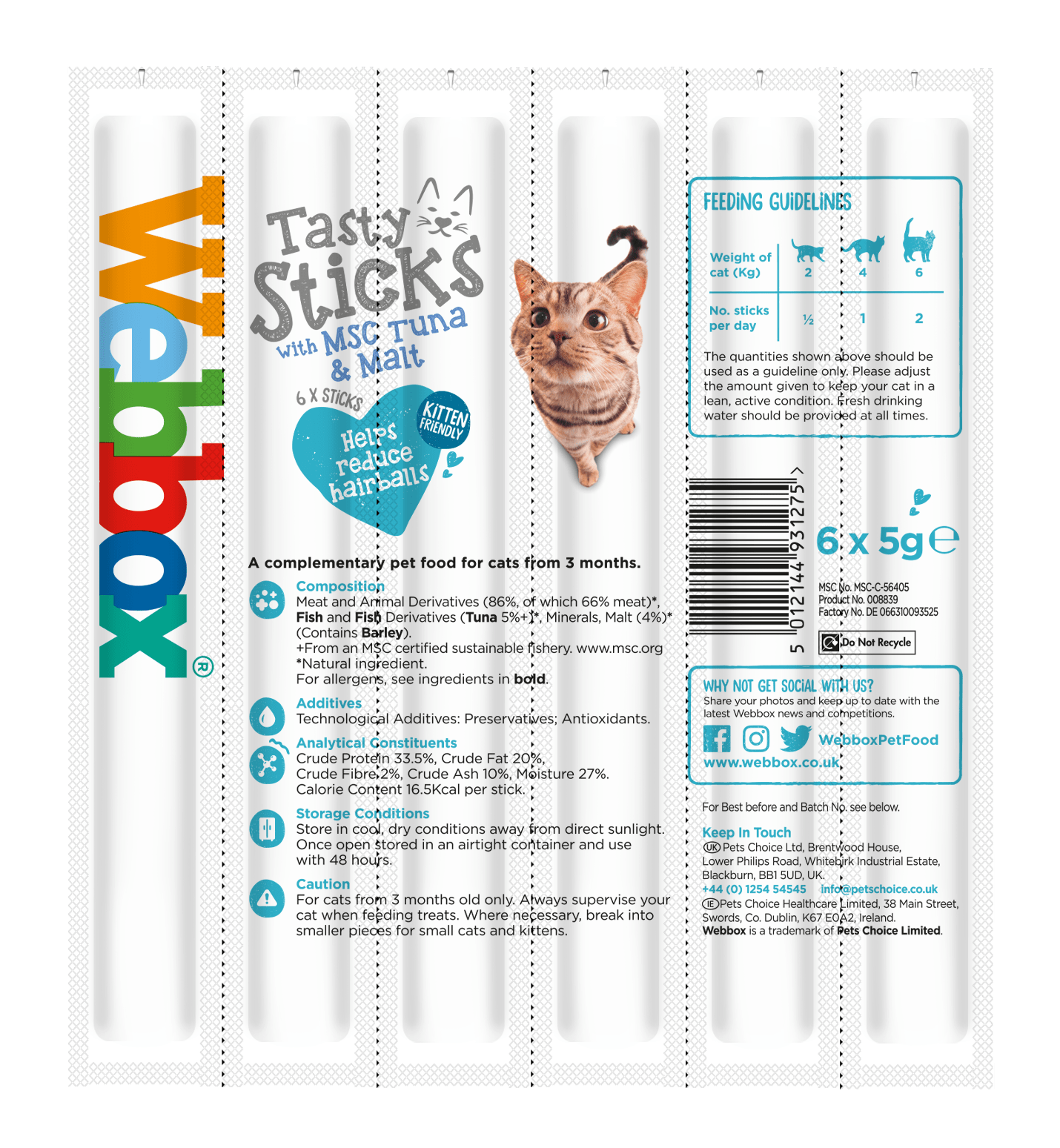 Caution: For cats from 3 months old only. Always supervise your cat when feeding treats. Where necessary break into smaller pieces for small cats and kittens.