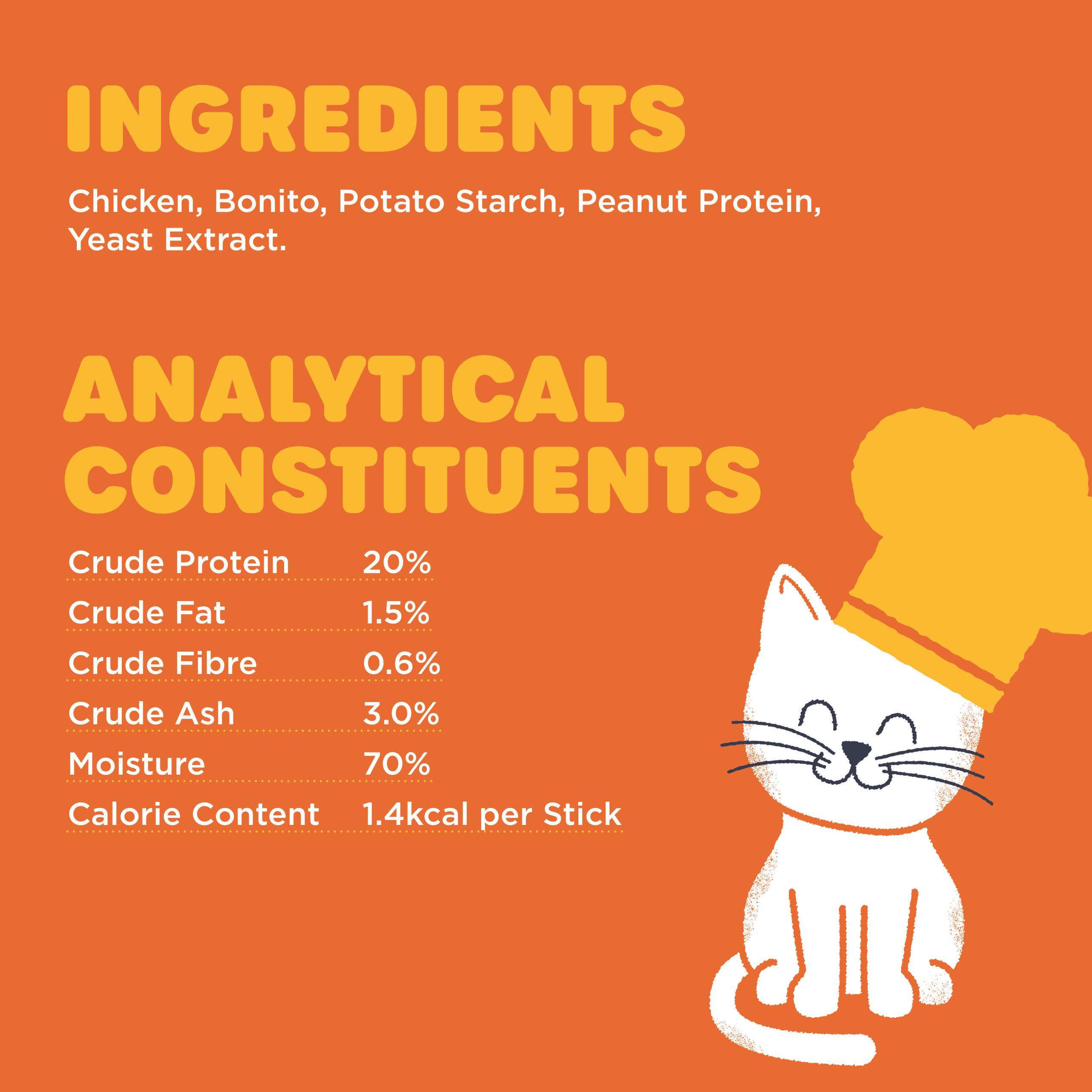 Chicken, Bonito, Potato Starch, Peanut Protein, Yeast Extract.