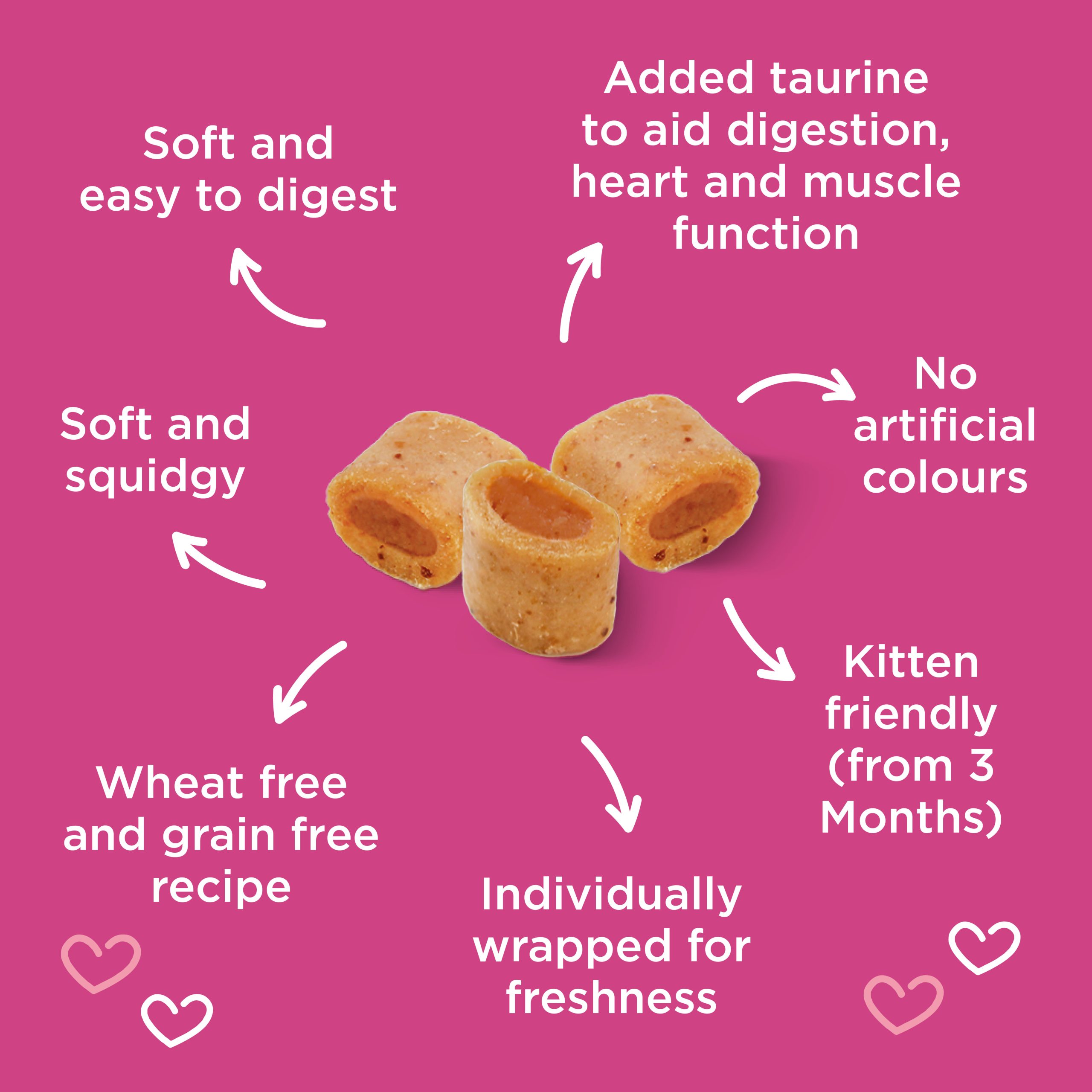 Fresh drinking water should be provided at all times. The quantities shown above should be used as a guideline only. Please adjust the amount given to keep your cat in a lean, active condition. Caution: For cats from 3 months old only. Always supervise your cat when feeding treats. Where necessary break into smaller pieces for small cats and kittens.