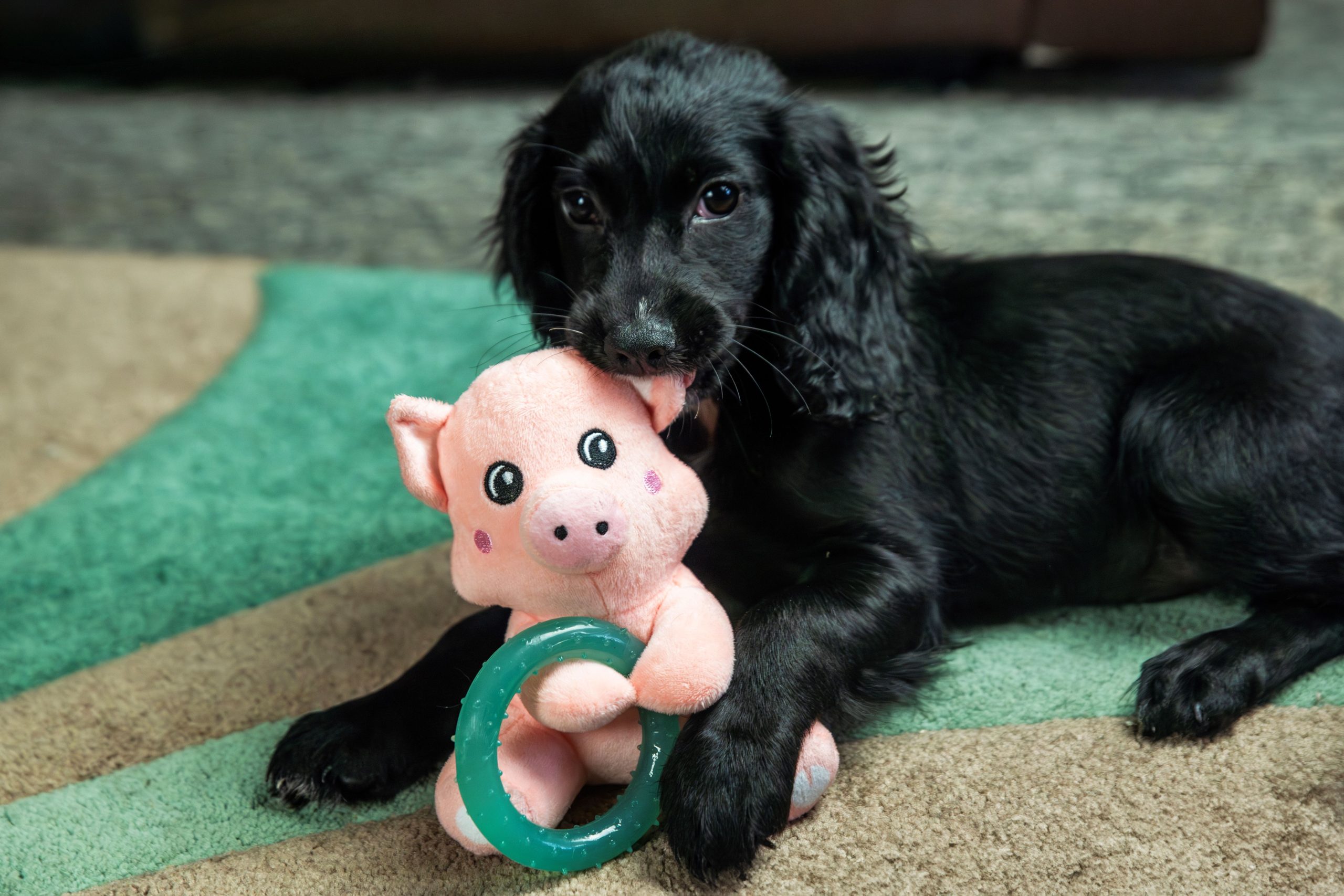 Dogs love to play! The perfect plush toy with puppy teething ring.