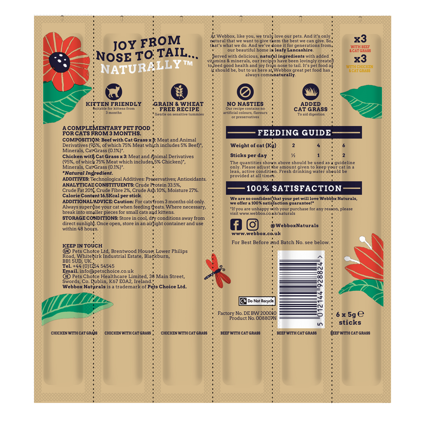 Webbox Naturals Cat Sticks with Beef and Cat Grass & Chicken with Cat Grass