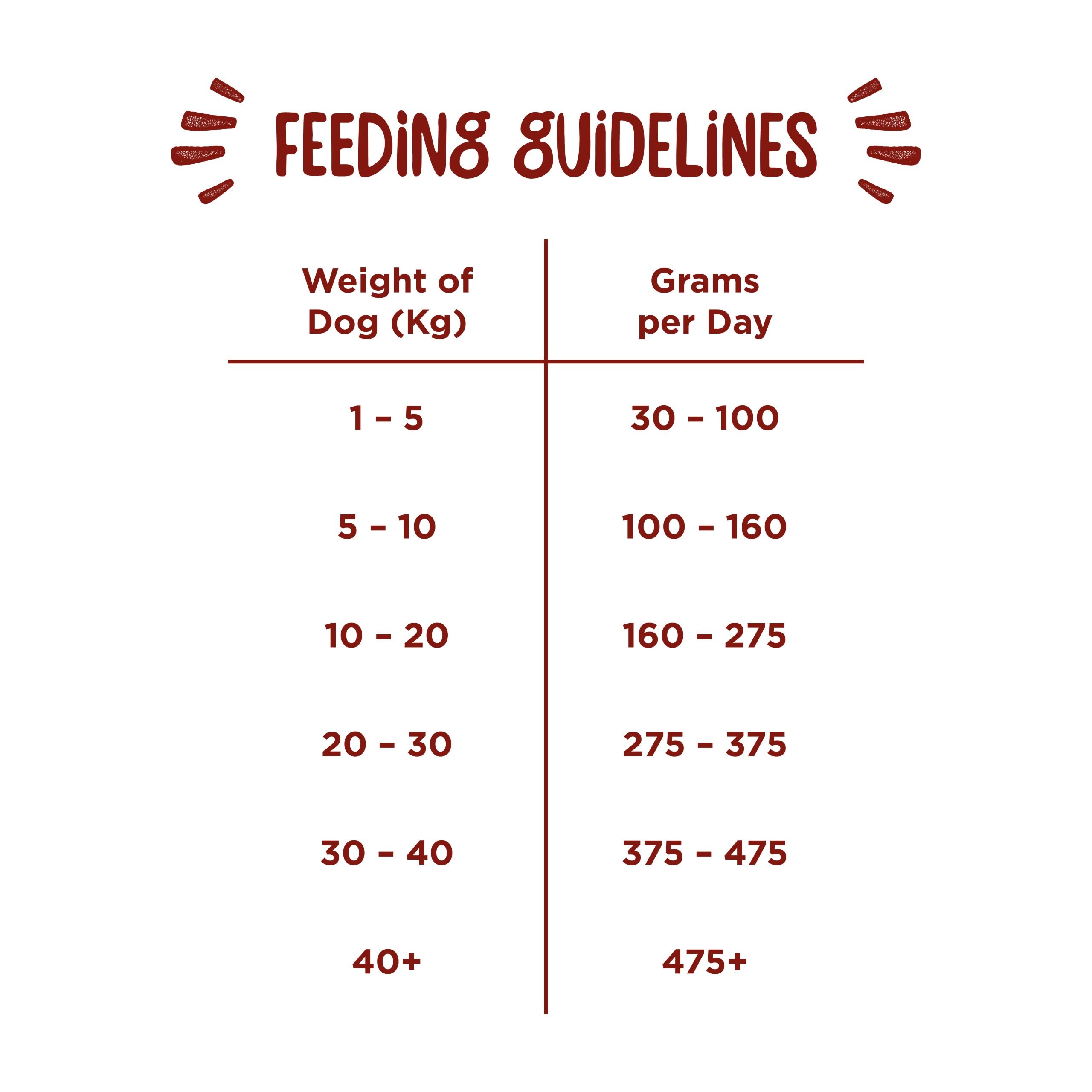Always ensure you feed equal parts of Mixer with your dog’s regular food. Every dog’s appetite is different, however, as a guideline on the amount to feed your pet per day, please refer to our Feeding Guide tab.
